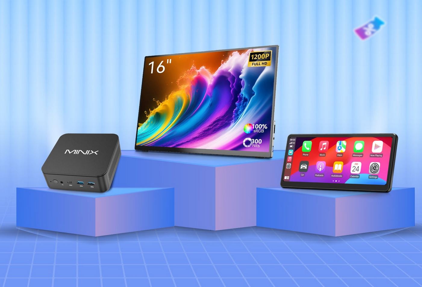 Ebenfalls mobil, aber für einen ganz anderen Zweck ist das Minix CP89-HD. Hierbei handelt es sich um ein Wireless CarPlay Display, das sowohl Apple CarPlay als auch Android Auto unterstützt und mit 99 Prozent der Fahrzeuge weltweit kompatibel ist. Es lässt sich einfach nachrüsten und erweitert Autos und Co um umfangreiche Audio-Konnektivitätsoptionen einschließlich Lautsprecher, zwei Bluetooth-Modi, 3,5-mm-AUX-Ausgang und FM-Transmitter. Mit Magnet- und Saugnapfhalterung ist eine einfache Installation sichergestellt.