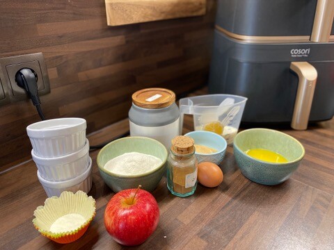 Testessen 4 und 5 nutze ich für zwei weitere für Heißluftfritteusen eher ungewöhnliche Funktionen: Reis kochen und Muffins backen.