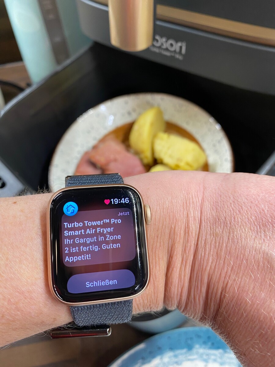 Über den QR-Code in der Anleitung ist es sehr einfach den Cosori Air Fry von Pro auf Smart upzugraden und mit der VeSync-App zu synchronisieren. Auch mit der Smartwatch kann das Küchengerät gekoppelt werden.