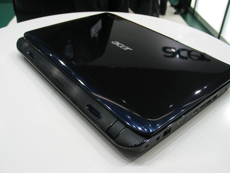 Ein "Insider-Tipp" lies uns letztlich auch noch am Acer Stand fündig werden, wo der zuständige Produktmanager auf unsere beharrliche Anfrage hin einen besonderen Leckerbissen hervorzauberte. In Form eines Pre-Samples des Acer Aspire 5935 durften wir uns Bild des kommenden Design-Refreshs der Acer Palette machen. Das neue Gemstone Design vermochte im ersten Hands-On eines Engeneering Samples durchaus zu gefallen. Wichtigstes Gestaltungsmerkmal: Das "floating keyboard", also überaus flach gehaltenen Tasten die etwas voneinander abgesetzt nahezu über dem Gehäuse schweben. Nicht nur optisch, auch haptisch hinterließen diese einen sehr positiven Eindruck. Hier die ersten Impressionen.