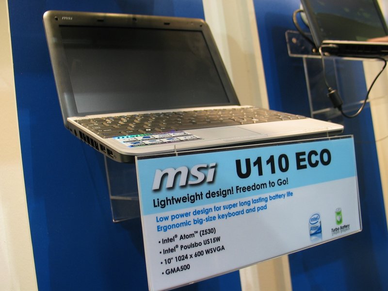 Mit komplett neuer Hardware, allerdings verpackt im selben Chassis, bestückt MSI das U110 ECO. In diesem Mini-Notebook wird eine Intel Atom Z530 CPU in Verbindung mit dem Intel Pulsbo US15W Chipsatz verbaut. Interessant klingt auch das U115 Hybrid mit gleichen Kernkomponenten allerdings einer Kombination aus Hdd und SSD.