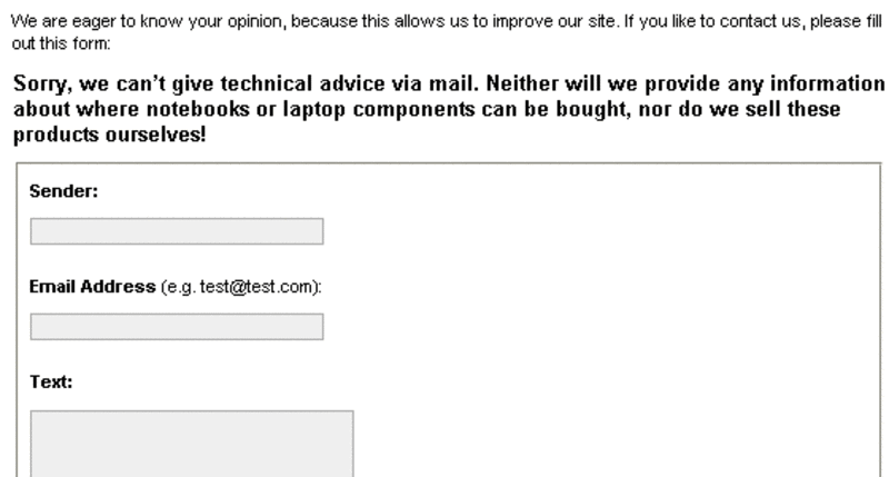 Das gilt generell für alle nachfolgenden Zitate: Wenn ich in einem Online-Shop etwas kaufen will, dann schaue ich doch erst mal nach (zB im Impressum), was das für ein Shop ist, ob es überhaupt ein Shop ist, in welchem Land, wie groß, welche Liefer- und Zahlungskonditionen und so weiter... Doch unfassbar viele Leute schicken einfach Nachrichten, ich will bei euch kaufen, liefert mir Infos, ohne dass sie sich selbst auch nur annähernd irgendwie mit dem vermeintlichen Händler auseinandergesetzt hätten. Für Notebook-Shops muss es tatsächlich schlimm sein, wenn da ständig unseriöse Anfragen eintrudeln, die überhaupt nicht durchdacht sind. Im Gegensatz zu uns können echte Hardware-Shops diese Anfragen nicht von vornherein abschmettern, sondern müssen erst herausfinden, ob das seriöse Kunden sind.