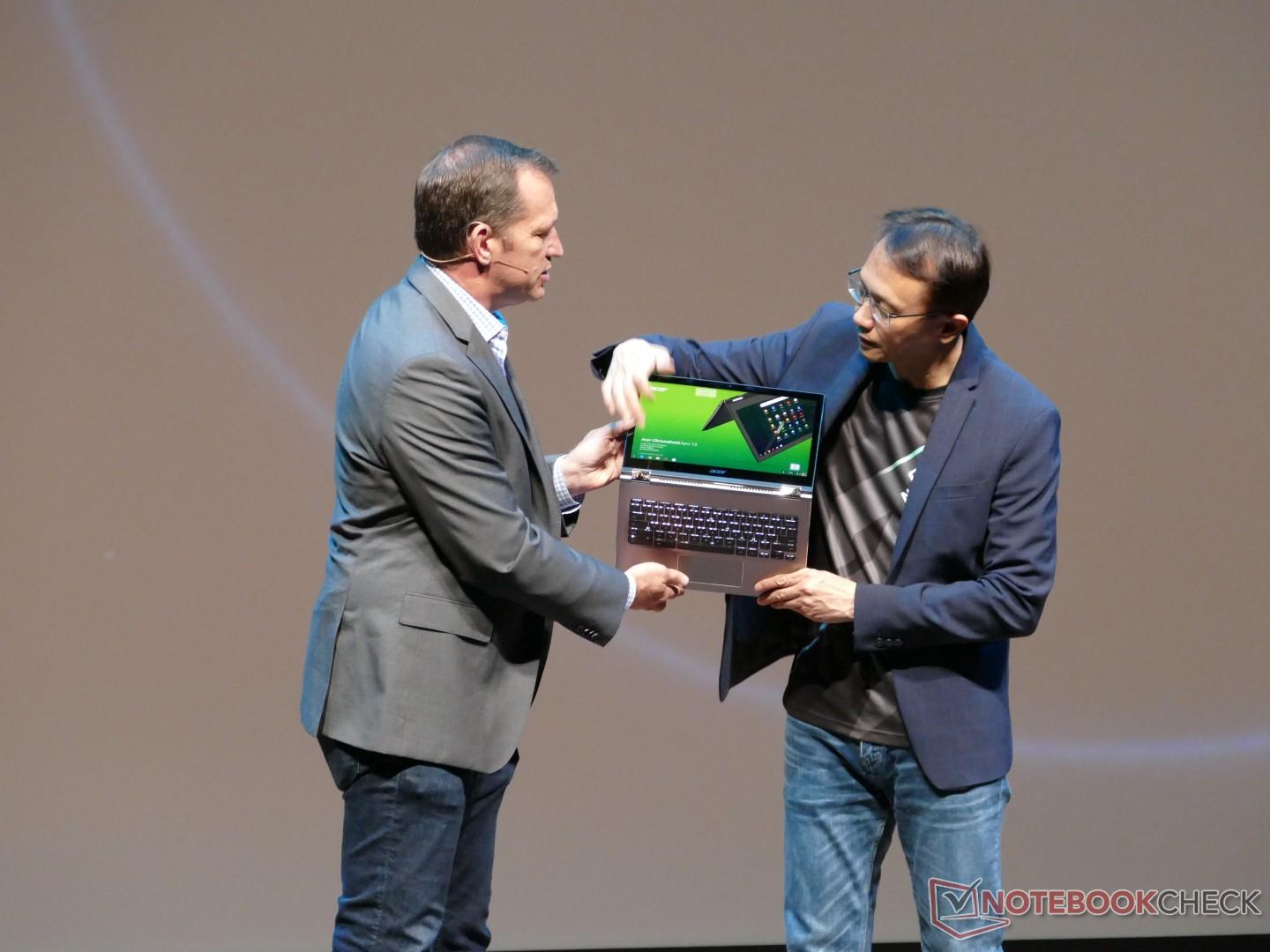 Einen Kompromiss aus Tablet und Netbook stellt das mit Google-Betriebssystem befeuerte Chromebook 13 Spin dar. Die Inhalte werden auf einem 13,5 Zoll messenden IPS-Screen wiedergegeben, der mit 2.256 x 1.504 Pixel auflöst. Acer weist in seiner Pressemitteilung auf das Seitenverhältnis 3:2 hin, das in der Höhe 18 Prozent mehr Platz als die weit verbreiteten 16:9-Varianten bietet. Der Blickwinkel des Panels soll bei 178 Grad liegen. Wie bei solchen Convertibles gewohnt, stehen vier Betriebsmodi zur Verfügung. Notebook, Zelt, Präsentation und Tablet. Das Acer Chromebook 13 Spin wird in Konfigurationen mit Intel Core i3-8130U sowie Intel Core i5-8250U nebst bis zu 16 GB RAM und maximal 128 GB eMMC in den Handel kommen. Mit WLAN 802.11ac, USB 3.0, Bluetooth 4.2 und zwei USB-Typ-C-Ports (3.1) fallen die Schnittstellen vielseitig aus. Eine Besonderheit ist der mitgelieferte Stylus EMR-Touchpen
