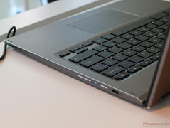 Das ungewöhnliche 3:2 Display sticht sofort ins Auge und ist ein klares Bekenntnis zum Bildungsbereich. Übliche Hochformat-Dokumente können so besser dargestellt werden. Das C-Cover dürfte aus Aluminium gefertigt sein, das Touchpad aus Glas. Beim Display unterscheidet sich die Spin-Variante durch ihre Edge-to Edge Bildschirm-Verglasung von der klassischen Clamshell-Variante, deren Display eine übliche Kunststoffeinfassung zeigt. In jedem Fall kommt allerdings ein spiegelndes Display zum Einsatz. Der Materialeindruck ist bei den 13-Zoll-Varianten nicht ganz so wertig wie bei den (überraschend guten) größeren 15-Zoll Chromebook-Modellen, auch der Klang der Speaker an der Unterseite ist eher als verhalten und dumpf zu beschreiben.