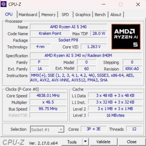 In deutschen Online-Shops findet man das Nitro V14 derzeit mit Ryzen AI 5 340 oder AI 7 350 bzw. GeForce RTX 5050 oder RTX 5060. Beide Konfigurationen machen es sich in der Mittelklasse bequem. Unser Testgerät hatte zudem 16 GB DDR5-RAM (2x 8 GB) und eine 1-TB-SSD an Bord.