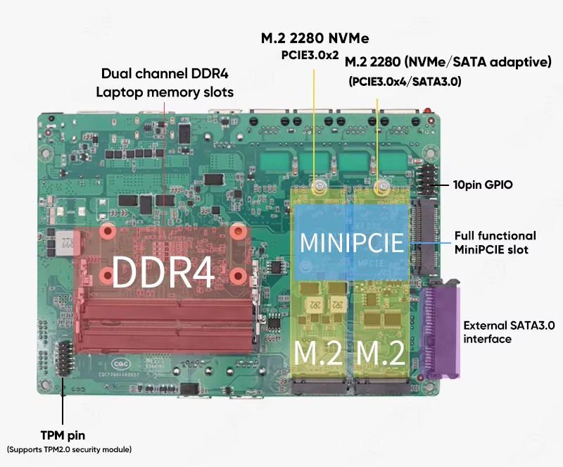 Das Gehäuse besteht aus Aluminium und dürfte eine gewisse, passive Kühlung bieten, allerdings sind auch Lüfter montiert. Angeboten wird der Topton E4 aktuell nur als Barebone, dementsprechend müssen sich Nutzer selbst um Arbeitsspeicher und Speichermedien kümmern. Für die Installation eines bis zu 64 Gigabyte großen DDR4-Arbeitsspeicher stehen zwei einzelne Slots bereit, die Installation von zwei M.2 2280-SSDs ist vorgesehen, wobei einer der beiden Slots über maximal vier PCIe 3.0-Lanes und der andere Slot über zwei PCIe 3.0-Lanes angebunden werden kann. SATA-Speicher und damit auch klassische Magnetfestplatten lassen sich nutzen, allerdings ist dafür im 175 x 122 x 33,3 Millimeter großen Gehäuse kein Platz - dafür steht ein externer Anschluss bereit.