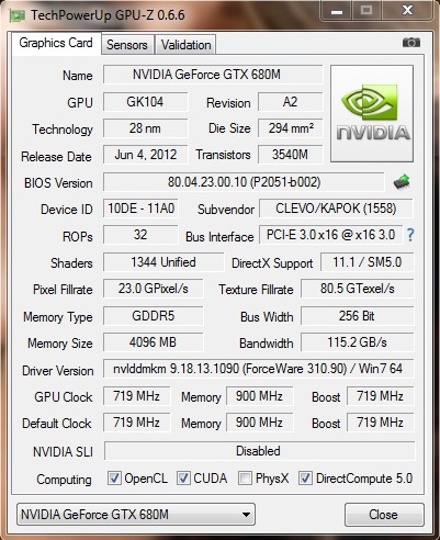 | GeForce GTX 680M (ForceWare 310.90) | |