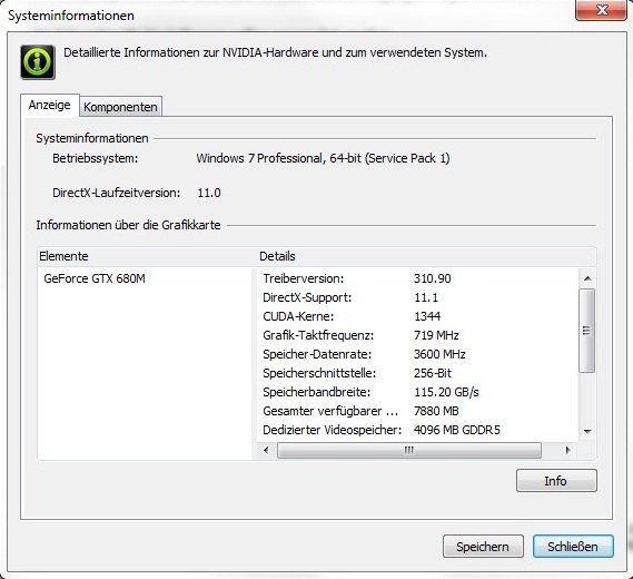 Um eventuellen Limitierungen vorzubeugen, standen dem Prozessor 2x 4096 MByte DDR3-RAM (Corsair Vengeance @ 1600 MHz) zur Seite. Die Benchmarks installierten wir auf einer 750 GByte großen Hybrid-Festplatte (Seagate Momentus XT). Das Betriebssystem (Windows 7 Professional 64 Bit) war frisch aufgesetzt und komplett geupdatet. Während die Radeon HD 7970M vom eingangs genannten Catalyst 13.1 beschleunigt wurde, lief die GeForce GTX 680M mit der ebenfalls WHQL-zertifizierten ForceWare 310.90.