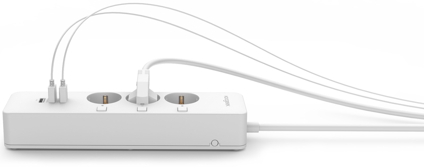 Die Steckdosenleiste bietet drei individuell steuerbare Steckdosen, die eine Gesamtleistung von bis zu 3000 Watt liefern können, sowie drei USB-A Ports, welche insgesamt 4,1A liefern. Als zusätzliches Feature misst der Verteiler auch den Stromverbrauch der angeschlossenen Geräte und stellt diesen in der App da.