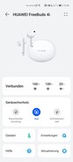 Bei softwareseitigen Funktionsumfang zeigen sich auch direkt die ersten Unterschiede. Die FreeBuds 4i besitzen die geringste Ausstattung. So werden die Akkustände der einzelnen Ohrhörer und des Etuis angezeigt und es können auch die Gesten für jeden Ohrhörer eingestellt werden. Außerdem lässt sich die Trageerkennung ein- beziehungsweise ausschalten. Im Bereich Geräuschschutz kann die Geräuschunterdrückung gesteuert oder der Aufmerksamkeitsmodus aktiviert werden.