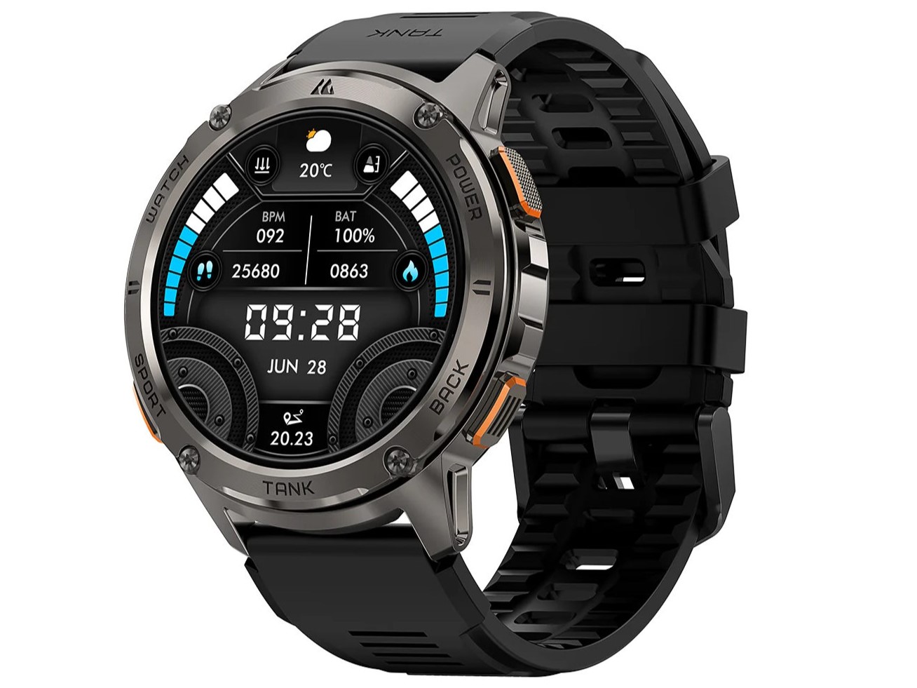 Auch die Tank T3 soll eine robuste Smartwatch sein, die 15 verschiedene MIL-STD-810H-Zertifizierungen mitbringen soll. Die 5-ATM-Wasserdichtigkeit erlaubt die Nutzung auch beim Schwimmen. Das Smartphone besteht aus einer Zinklegierung, Plastik und zum Teil auch Edelstahl und bringt auch Corning Gorilla Glass 2 mit. Der 1,43 Zoll große AMOLED-Bildschirm löst mit 466 x 466 Pixeln auf und soll eine Spitzenhelligkeit von stolzen 1.000 cd/m² leisten können.