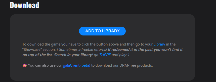Wer sich das Spiel sichern möchte, kann das in wenigen Schritten tun. Dazu mit einem Indiegala-Konto auf der Website anmelden, zum Bereich „Freebies“ gehen und auf der Seite von Ceville auf „Add to Library“ klicken – schon erscheint es im Showcase-Bereich. Von dort aus können Gamer es DRM-frei herunterladen oder über den optionalen GalaClient (Beta) spielen.
