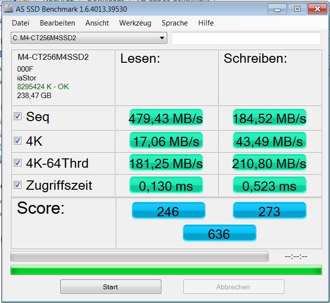 Schenker hat unser Testgerät mit einer Solid State Disk von Crucial ausgestattet. Die SSD bietet eine Speicherkapzität von 256 Gigabyte. Die Lesegeschwindigkeit liegt mit 479,3 MB/s klar im grünen Bereich. Die Schreibgeschwindigkeit könnte mit 184,52 MB/s schneller sein. Hier leisten andere Solid State Disks mehr. Grundsätzlich arbeitet der Speicher schnell und flüssig. Verzögerungen treten nicht auf. Das Notebook bietet noch Platz für eine weitere Festplatte. So ließe sich zusätzlich eine preisgünstige, herkömmliche Festplatte einbauen, auf der man die persönlichen Daten lagern könnte. Lobenswert ist der einfache Ein- und Ausbau beider Festplatten.
