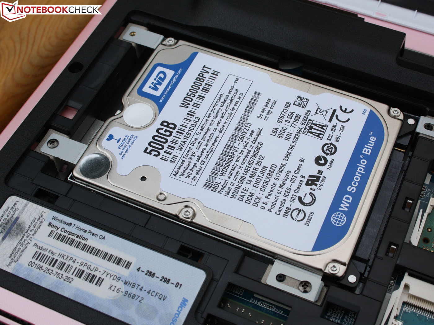 Die konventionelle Festplatte von Western Digital dreht mit 5400 Umdrehungen pro Minute und fasst bis zu 500 Gigabyte. Die Benchmarkergebnisse im HDTune Test fallen durchschnittlich aus. Übertragungsraten von durchschnittlich 76 MB/s sind typisch für so einen Datenträger, die Zugriffszeit von über 20 Millisekunden etwas erhöht. Im Vergleich zu Ultrabooks die entweder auf einen SSD-Cache oder eine vollwerte SSD einsetzen ist das Sony Vaio hier eindeutig im Nachteil. Spürbar wird dies beim Systemstart oder dem Öffnen von Programmen und Dateien.