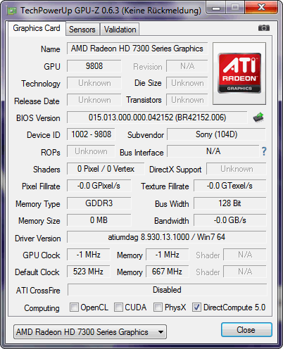 Ferner stecken 4.096 MB DDR3 Arbeitsspeicher im Gerät (1 x 4 GB). Das Upgrade auf acht Gigabyte ist dank des zweiten (leeren) RAM-Slots ein leichtes Unterfangen. Sony setzt das 64 Bit Windows 7 Home Premium auf, weshalb die 64-Bit APU bestmöglich ausgenutzt wird.