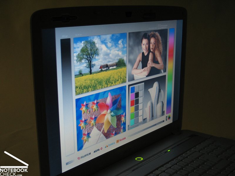 Das Acer Aspire 7720G bietet ein 17 Zoll Display im WXGA+ Format mit einer Auflösung von 1440x900 Pixel. Das Display zeigt eine spiegelnde Oberfläche die Acer als „CrystalBrite“ bezeichnet. Dadurch wirkt das Bild bei optimalen Umgebungslichtverhältnissen zwar kontrastreicher und auch die Farben kommen besser zur Geltung, bei ungünstigen Lichtverhältnissen, also einer Lichtquelle hinter dem Benutzer kann es aber zu unangenehmen Spiegelungen am Display kommen.