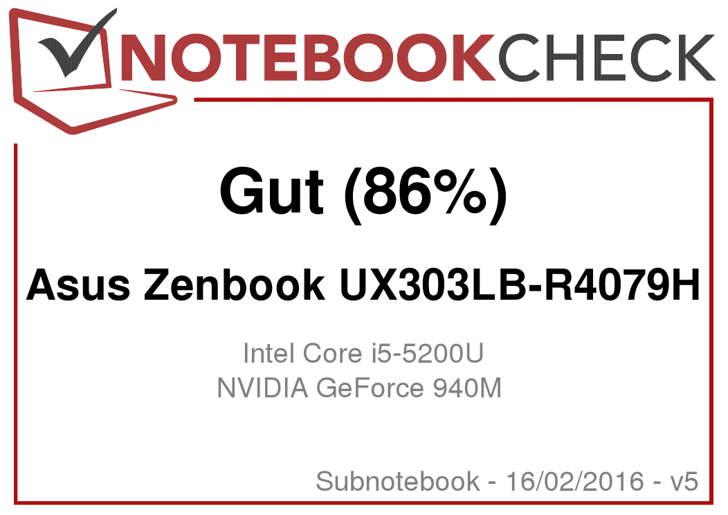 Das Zenbook UX303LN-R4274H erhielt von uns im Mai 2015 ein Rating von 86 %, das schaffen nur die besten Geräte. Kein nennenswertes Manko entdeckten wir: Neben einem matten, hellen IPS-Bildschirm gehen sehr gute Eingabegeräte, geringe Emissionen und beste Laufzeiten Hand in Hand. Gepaart mit einer schnellen SSD, einem soliden 15-Watt-SoC und der GeForce 840M hat der 13-Zoller alles an Bord, was sich viele Kunden in einem edel verarbeiteten Aluminium Unibody wünschen.