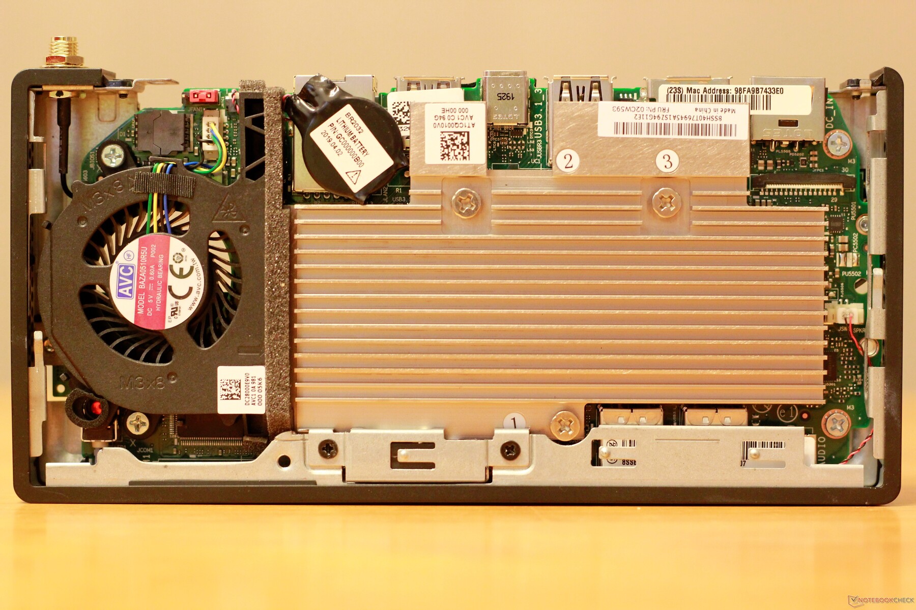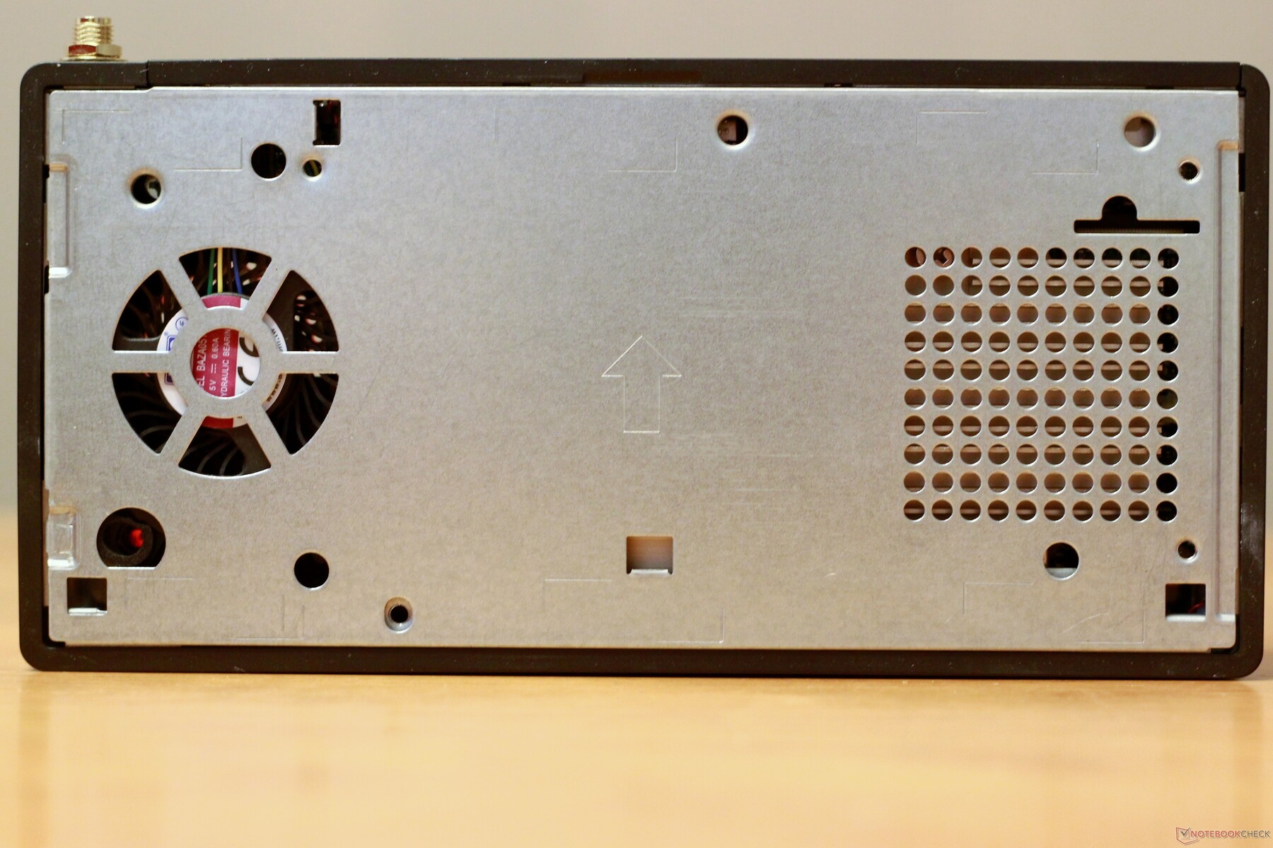 Das M90n Nano setzt auf einen einzelnen Lüfter. Auf die übliche Betriebsdistanz (ca. 1 m Abstand) ist der Lüfter fast unhörbar. Auch unter Last ist er kaum wahrnehmbar. Das M90n Nano verfügt über kleine, dünne Lautsprecher, die nur für die Einrichtung nützlich sind - hier sollte man definitiv externe Lautsprecher oder Kopfhörer verwenden.