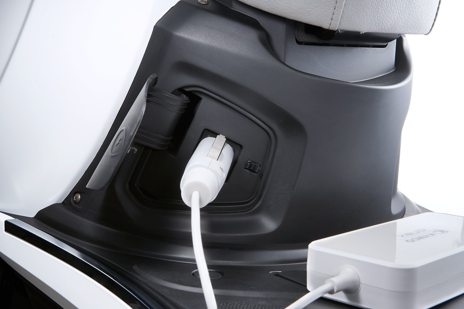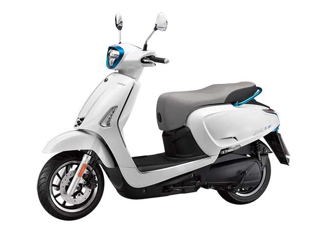 Der Elektromotor des Kymco Like 125 EV leistet 3,2 kW und wuchtet ein Drehmoment von 124 Nm aufs Hinterrad. Optisch hält sich der Like 125 EV an die Benziner der Like-Serie, setzt sich allerdings mit blaufarbenen Einfassungen am vorderen LED-Lampenschirm, dem äußere Rahmen der digitalen Instrumententafel mit Noodoe-Cockpit, dem hinteren Griff, dem Heck und der Kontur der Fahrzeugsilhouette ab. Der Like 125 EV ist außerdem mit einer Smartphone-Verbindungsfunktion ausgestattet und der Energiestatus des Fahrzeugs kann über ein Smartphone überwacht werden. Mit Kymco Ionex hat der E-Roller auch gleich ein Navigationssystem an Bord.