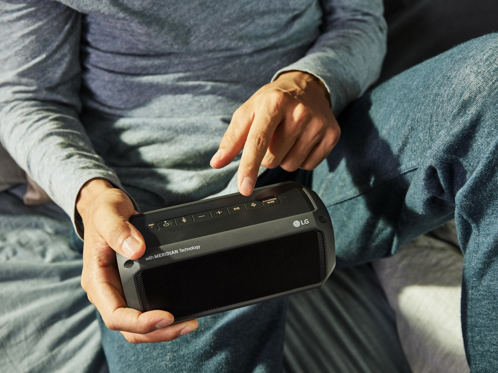 Die auf der CES 2018 erstmals präsentierten neuen Bluetooth-Lautsprecher der PK-Serie sind laut LG Electronics eines der ersten Ergebnisse der Anfang des Jahres bekannt gegebenen Kooperation zwischen LG und den britischen Audiospezialisten von Meridian. Die neuen portablen Speaker bieten dank passiven Bassmembranen an beiden Stirnseiten der Lautsprecher über einen kräftigen Schalldruck im niedrigen Frequenzbereich.