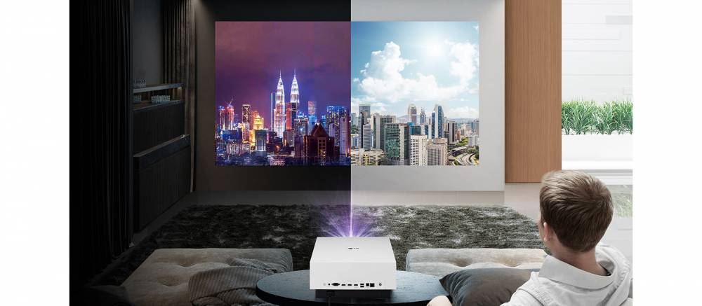 Beide Modelle bieten das gleiche Bild. Sie erreichen eine Helligkeit von 2.700 ANSI-Lumen und sind damit etwas dunkler als die neuen Gaming-Beamer von Optoma. Dennoch reicht diese Helligkeit für die meisten Anwendungszenarien allemal aus, auch dank der Funktion LG Brightness Optimizer. Hierbei bleibt die Irisblende im Dunkeln für ein lebendiges Bild mit tiefem Schwarz fast geschlossen. In hellen Räumen öffnet sie hingegen weit.