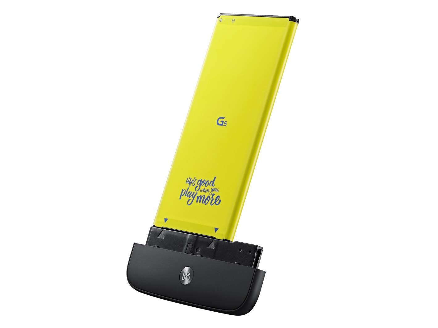 Das LG G5 ist ein modulares Smartphone. Unten am Gerät befindet sich ein Erweiterungsslot. Man kann die Unterseite herausziehen, woran der Akku befestigt ist. So lässt sich trotz Metall-Körper und Einheitsdesign der Akku wechseln. Aber nicht nur das: Unten lassen sich zahlreiche weitere Erweiterungen einsetzen. Dazu gehört „Cam Plus“ – ein Kameragriff mit Zusatzakku und Knöpfen. Ferner gibt es „Hi-Fi Plus“ mit 32-Bit Hi-Fi DAC für audiophilen Klang. Ferner lässt sich das Smartphone über den Anschluss in eine Virtual-Reality-Brille einstecken. Und es gibt eine Reihe weiterer Zubehörgeräte unter der Marke „LG G5 Friends“.