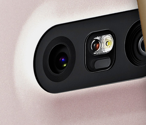 Eine weitere Innovation ist die 16-MP-Duo-Hauptkamera. Sie besteht aus einer 16-MP-Kamera und einer 8-MP-Kamera. Die Webcam vorne gibt es zusätzlich und diese löst auch mit acht Megapixeln auf. Die Rückkameras dienen dazu, einen größeren Bildausschnitt einzufangen. Die 16-MP-Kamera nimmt Bilder mit einer 78-Grad-Kameralinse auf und die 8-MP-Kamera ergänzt eine 135-Grad-Linse. Insgesamt ergeben sich Fotos mit einem um 1,7 Grad größeren Winkel als bei bisherigen Smartphone-Kameras – der um 15 Grad größer ist als das menschliche Sichtfeld.