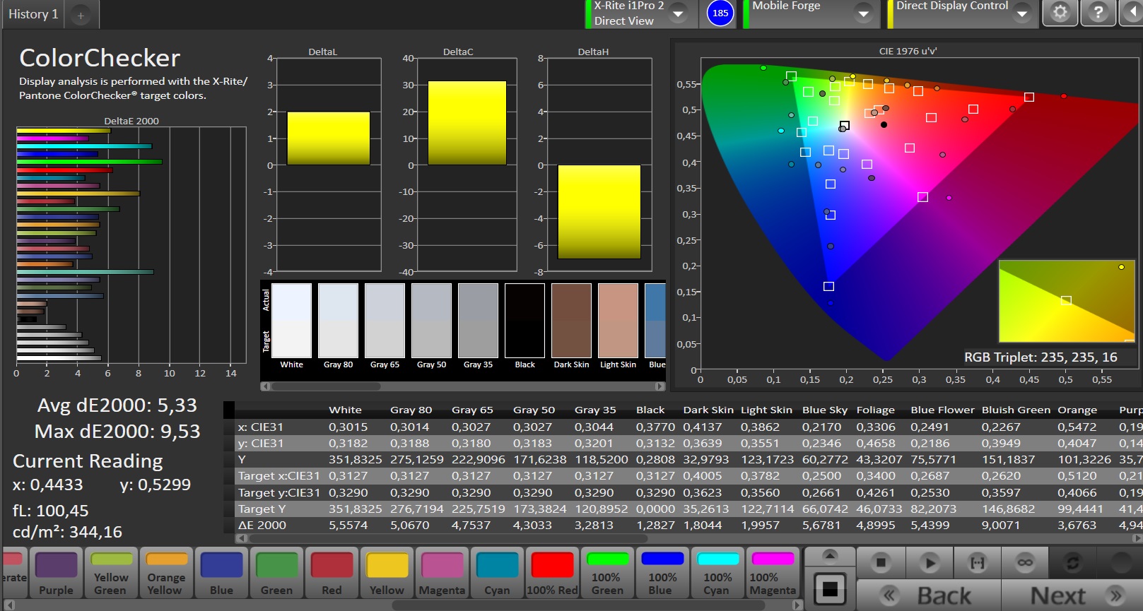 | Delta E Colorchecker * | 3.78 | 1.3 66% | 0.8 79% | 5.4 -43% | 1.39 63% | 2.14 43% | 1.5 60% |