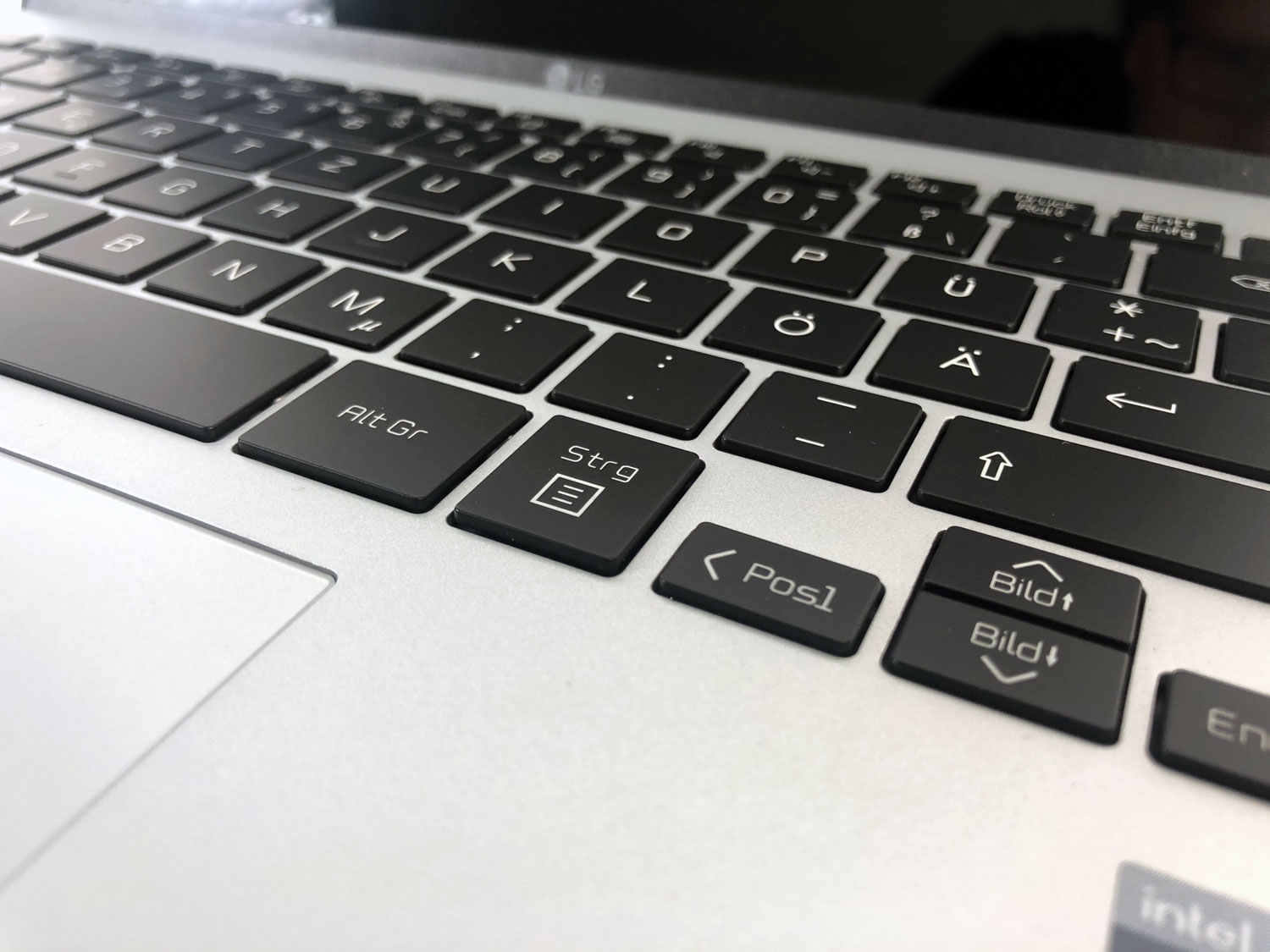 LG hat im Vergleich zum Vorgängermodell die Größe der Tasten sowie den Tastenanschlag von 1,5 auf 1,65 mm erhöht. Dies führt zu einer angenehm zu tippenden Tastatur, deren Tasten für die Gerätedicke einen ordentlichen Hub und Druckpunkt haben. Die Geräuschentwicklung beim Tippen hält sich in Grenzen.