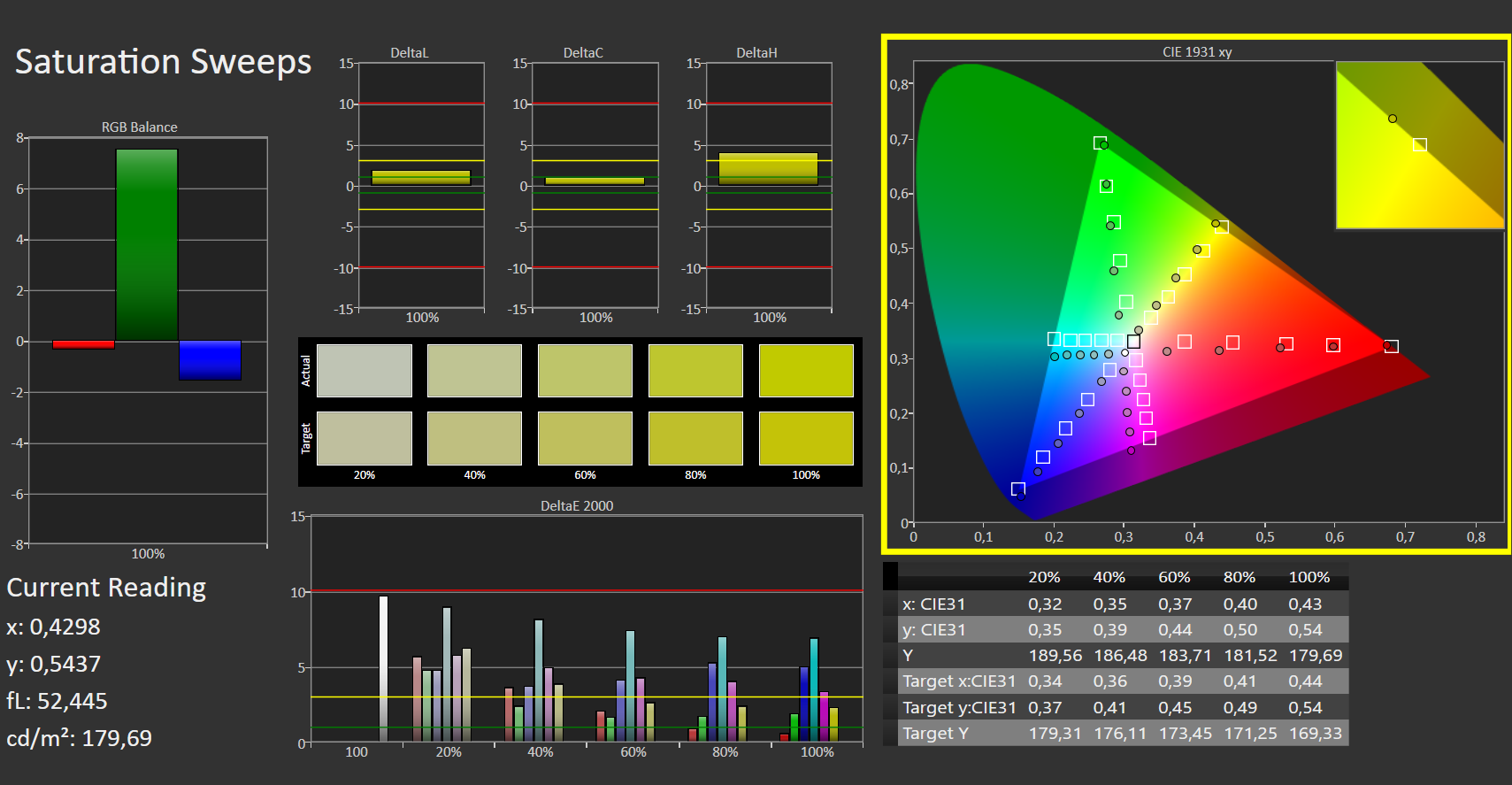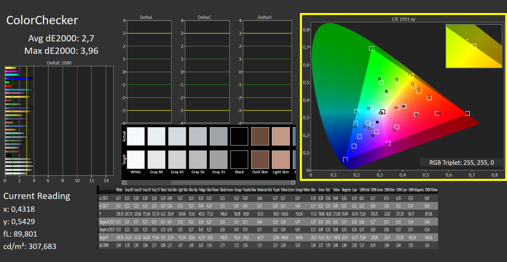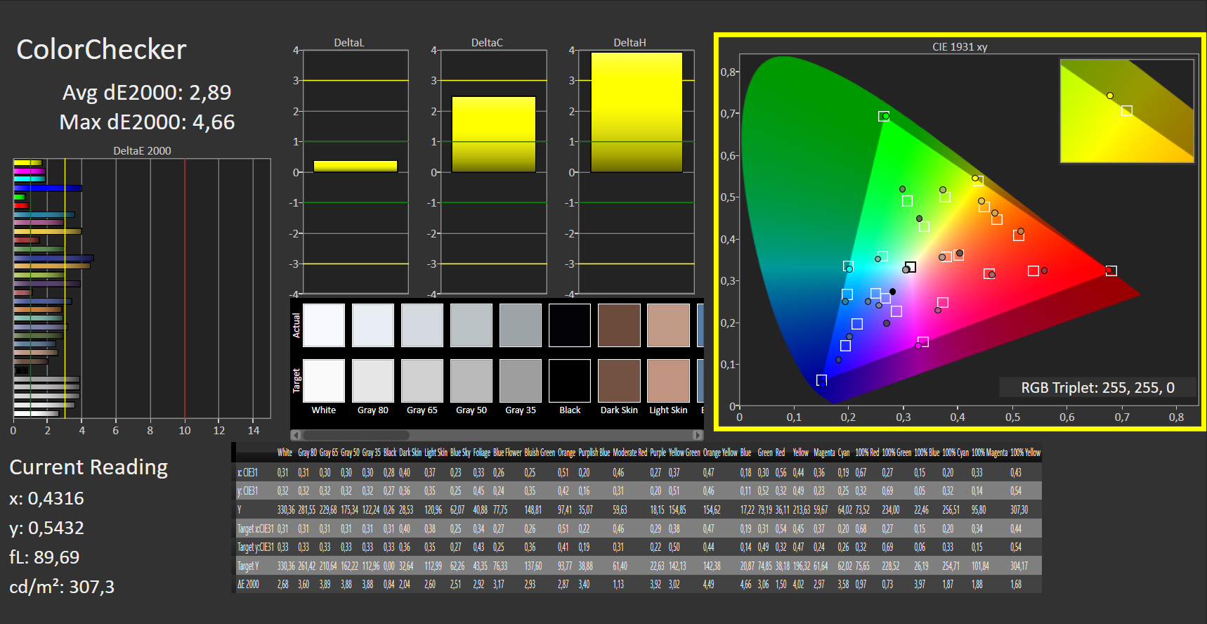 ΔE ColorChecker Calman: 2.89 | ∀{0.5-29.43 Ø4.78}