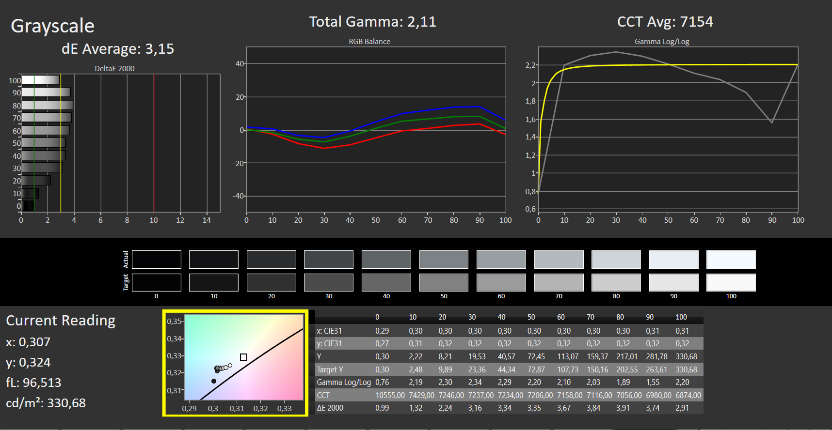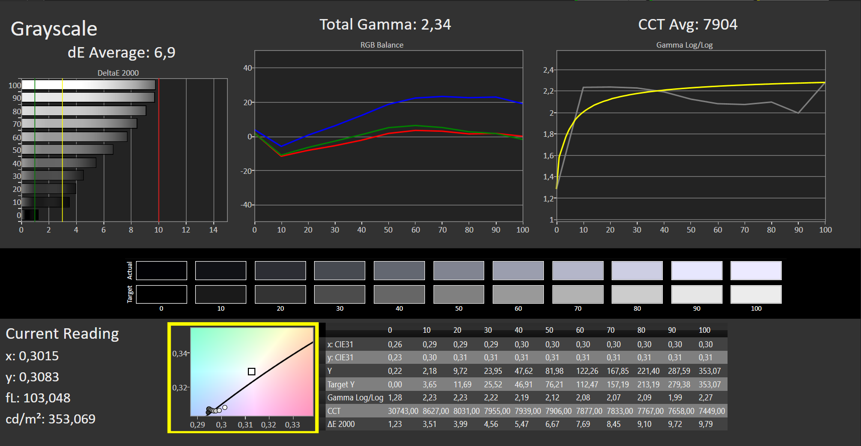 ΔE Greyscale Calman: 6.9 | ∀{0.09-98 Ø5}