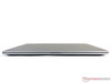 Das Scharnier ist ziemlich schwergängig. Es hält das Display recht stabil an Ort und Stelle und schwingt bei Bewegungen nur leicht nach. Das Öffnen des Gerätes mit nur einer Hand wird so aber zur Geschicklichkeitsübung, bei dem das geringe Gewicht ausnahmsweise mal nicht förderlich ist.