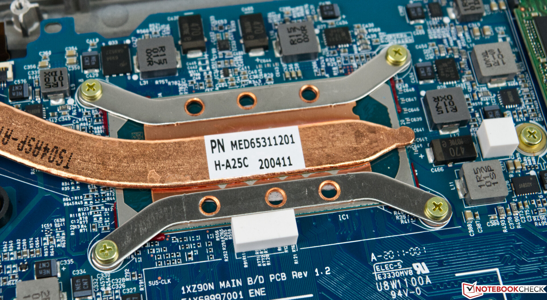 Wer es sich zutraut, der kann das LG-Gerät auch öffnen, um einfache Wartungs- und Upgradearbeiten durchzuführen. Insgesamt acht Schrauben verstecken sich unter diversen Abdeckungen und Standfüßen. Ist die Bodenplatte entfernt, so erlangt man guten Zugriff auf den Lüfter und den Kühlkörper. Der verlötete 8 GB große Arbeitsspeicher lässt sich lediglich mit einem zusätzlichen Modul erweitern.