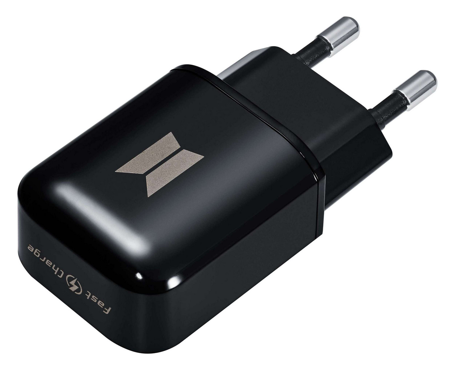 Das LG Q7 wird in der BTS-Edition in einer exklusiven Box mit BTS-Logo auf der Oberseite geliefert. Das Q7-Smartphone selbst trägt als "Tattoo" ein graviertes Logo der Boygroup BTS auf der Rückseite. Das BTS-Special enthält zudem Zubehör, das ebenfalls exklusiv für die LG Q7 BTS Edition gelabelt wurde: Kopfhörer und ein Ladegerät mit BTS-Signet.
