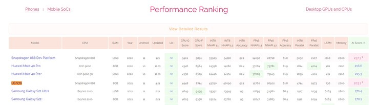 Und noch ein LG Phone sollte eigentlich demnächst auf den Markt kommen und zwar das LG V70, Codename Rainbow beziehungsweise Modellnummer LM-V700. Das mit Snapdragon 888 bestückte Flaggschiff taucht bereits im AI Benchmark auf und dank seines Qualcomm-SoC auch recht hoch im Ranking, noch oberhalb des Galaxy S21 Ultra von Samsung. Auch das LG V70 kommt nun nicht mehr auf den Markt, womit die V-Serie mit dem LG V60 ThinQ endet.