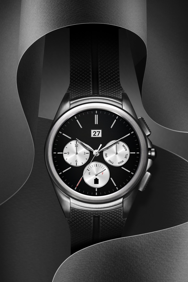 Mit der Watch Urbane 2nd Edition folgt LG dem Design klassischer Uhren. Das Edelstahlgehäuse ziert ein feines Haarlinienmuster und fasst das kreisrunde P-OLED-Display (348 ppi) elegant ein. Die 3 Tasten auf der rechten Seite bieten schnellen Zugriff auf Einstellungen sowie LG Health und andere Apps. Die stärkere 570-mAh-Batterie (Urbane: 410 mAh) soll den zusätzlichen Energieverbrauch durch die LTE-Unterstützung kompensieren.
