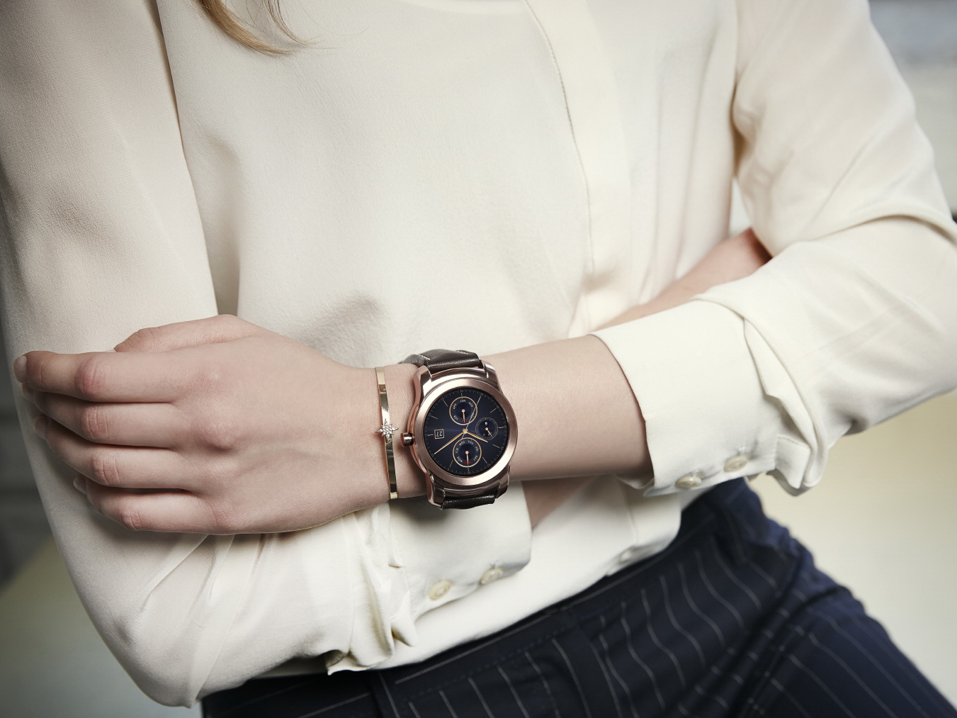Laut LG soll sich die Watch Urbane durch ein schnörkelloses Edelstahlgehäuse in den Farboptionen Gold und Silber und städtischem Flair von der eher sportlichen G Watch R absetzen. Von den Abmessungen her, ist die neue "Urban-Watch" zwar mit 10,9 Millimetern etwas dicker als die G Watch R mit 9,7 Millimetern, bleibt aber mit 45,5 x 52,2 Millimetern etwas kompakter (G Watch R: 46,4 x 53,6 mm). Auch der Rand um das runde Uhrenglas der Urbane ist etwas dünner als bei der G Watch R.
