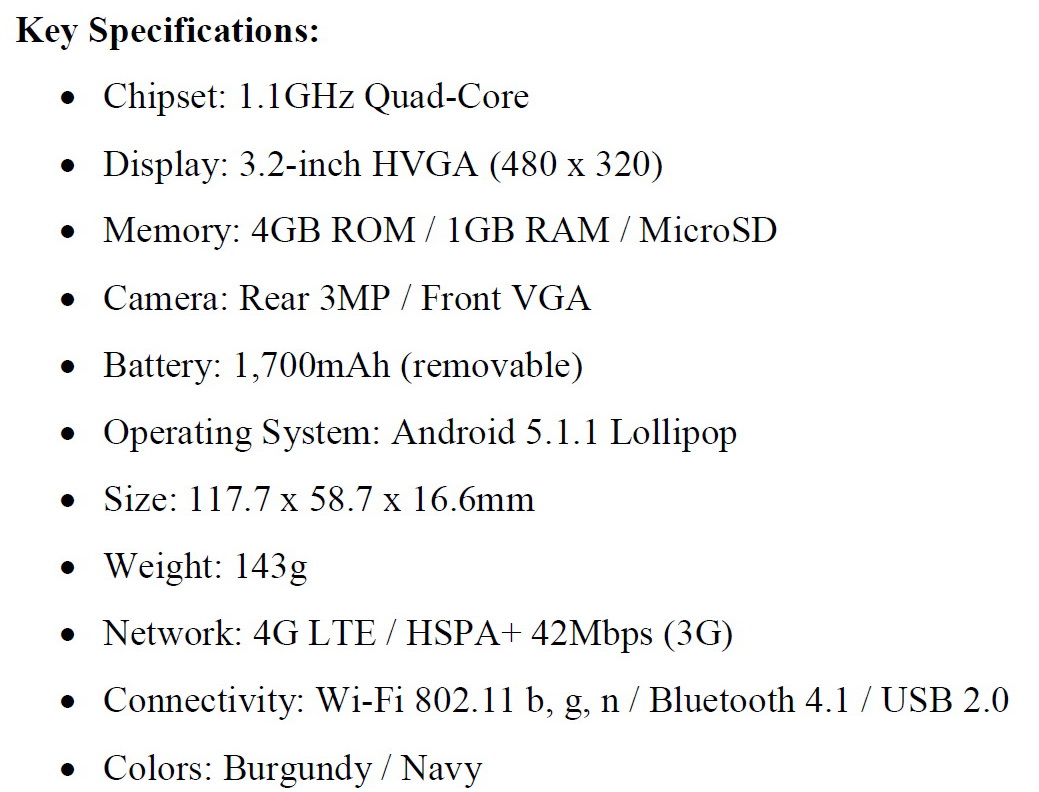 Als Mobile-OS läuft auf dem LTE-Smartphone LG Wine Smart Googles Android 5.1.1 Lollipop. Angetrieben wird das Wine Smart von einem Quadcore-Prozessor mit 1,1 GHz. Die große numerische 3x4-Tastenmatrix wird durch Hotkeys ergänzt, die sofortigen Zugriff auf häufig verwendete Funktionen wie Telefon Dialer, Adressbuch, Textnachrichten oder die integrierte 3-MP-Hauptkamera erlauben. Das 3,2-Zoll-Display zeigt 480 x 320 Pixel (HVGA).