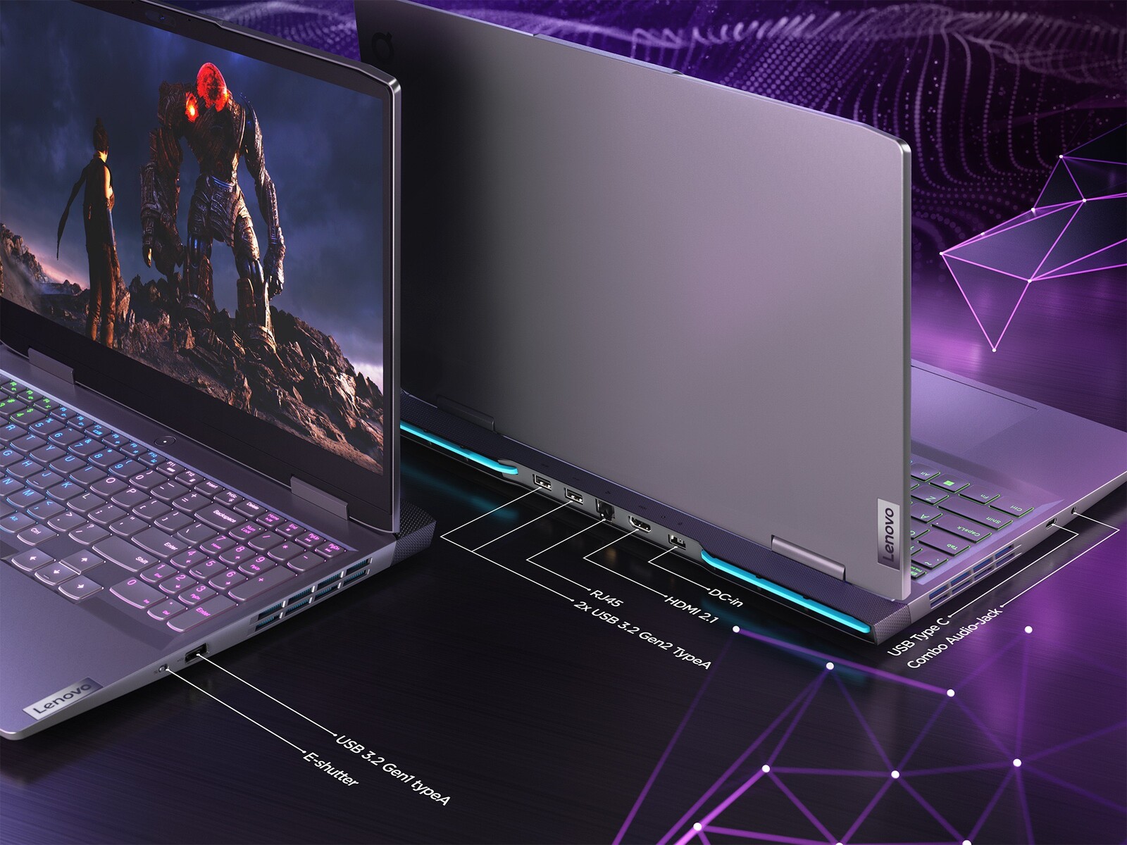 Bei der Grafik verlässt sich Lenovo auf Nvidia, und verbaut maximal eine GeForce RTX 4060 Laptop-GPU mit 8 GB GDDR6, einer TGP von 115 Watt und Boost-Taktraten bis 2.370 MHz. Lenovo bietet die Laptops mit bis zu 16 GB DDR5-5.600-RAM und einer maximal 1 TB fassenden PCIe 4.0 SSD an. Die Laptops besitzen einen zweiten M.2-Slot, um den Speicher nach dem Kauf erweitern zu können, sowie zwei RAM-Steckplätze.