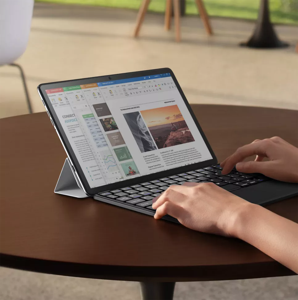 Die Front des 536 g wiegenden und 8,9 mm dünnen Tablets nimmt zu 79 Prozent ein 10,1 Zoll großes IPS-Display mit FHD+-Auflösung von 1.920 x 1.200 Pixeln und einer Helligkeit von 350 cd/m² ein. Für die Soundausgabe sind Stereo-Lautsprecher zuständig. Dazu verbaut der Hersteller einen 6.580 mAh großem Akku, der für bis zu 432 Stunden Standby langen soll und mit überschaubaren 10 Watt lädt. Abgerundet wird die Ausstattung von einer 8 MP Frontkamera basierend auf dem Samsung 5K4H7 und einer 13 MP Hauptkamera mit Sony IMX319. Als Betriebssystem ist Doke OS_P V3.0 basierend auf Android 12 installiert.