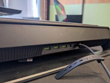 Die Stromversorgung des Razer Laptop Cooling Pads erfolgt über einen Stromanschluss auf der Rückseite des Cooling Pads. Dort befinden sich auch drei USB-A-2.0-Anschlüsse, die die Port-Ausstattung des eigenen Notebooks entsprechend erweitern können und so beispielsweise eine Anschlussmöglichkeit für 2,4 GHz Wireless Dongles bieten.
