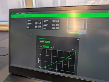 Die Lüfterkurve des Razer Laptop Cooling Pads kann entweder selbst angepasst, mit einer festen Lüfterdrehzahl eingestellt oder einfach über die drei Voreinstellungen "Quiet", "Balanced" oder "High" konfiguriert werden. Um das eigene Notebook an das Razer Laptop Cooling Pad anzupassen, gibt es eine Halterung sowie verschiedene Rahmengrößen für unterschiedliche Laptop-Abmessungen.