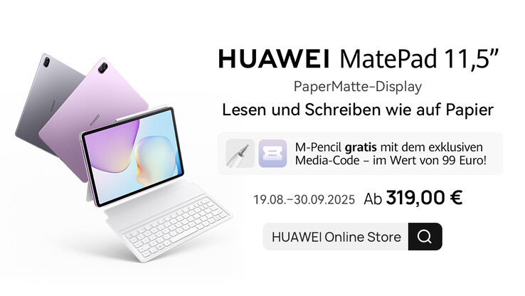 - HUAWEI MatePad 11.5 2025 PaperMatte für nur 319 Euro (statt 349 Euro) bzw. mit Tastatur für 369 Euro (statt 399 Euro)
