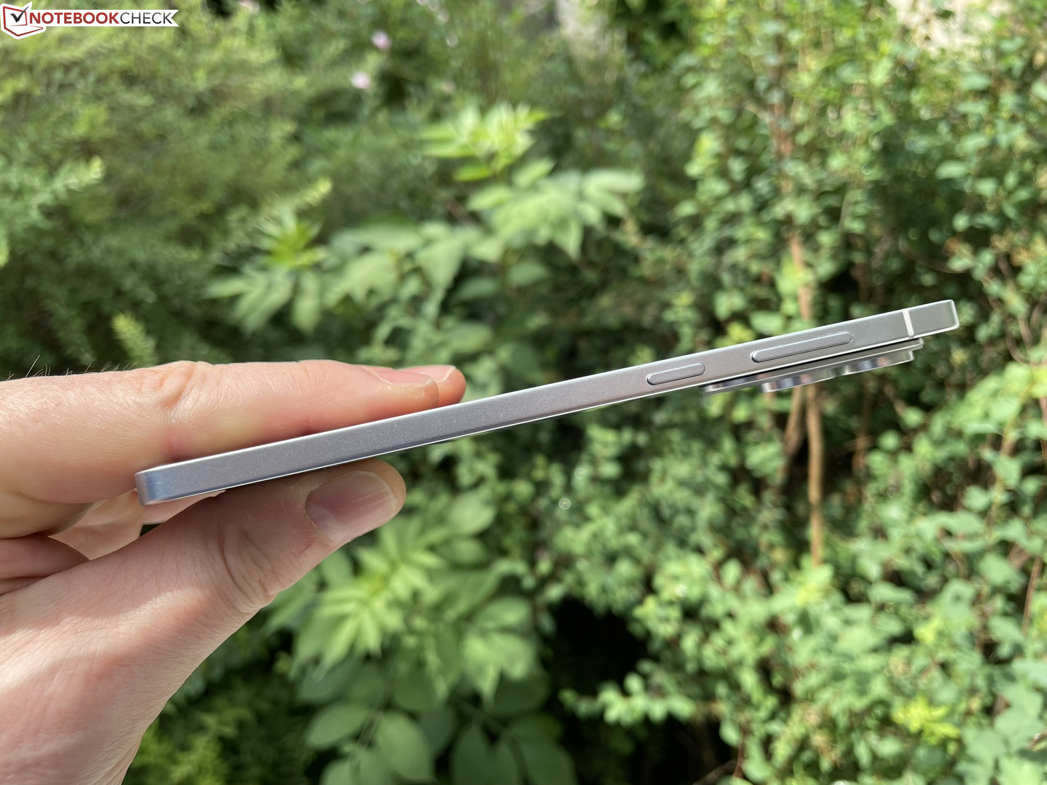 Samsung bietet das Galaxy S25 Edge in drei matten Farbvarianten an. Unser Testgerät kommt in Titanium Silver, weitere sind Titanium Icyblue und Titanium Jetblack.
