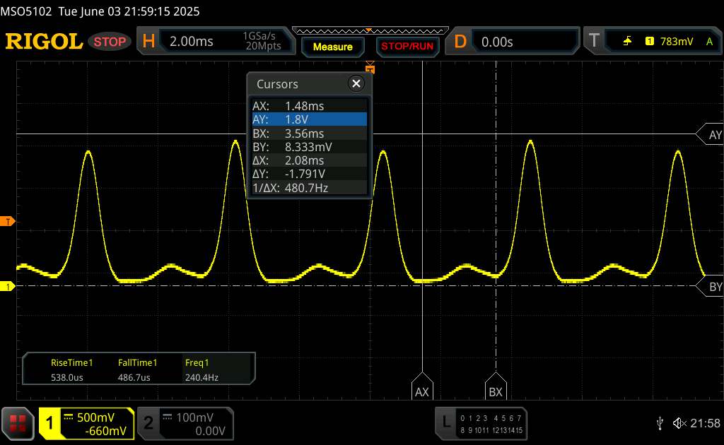 Das AMOLED-Panel flackert bei minimaler Helligkeit mit vergleichsweise niedrigen 240 Hz. Auf ein hochfrequentes PWM-Dimming verzichtet das Display, steigert sich mit zunehmender Helligkeit aber immerhin auf bis zu 480 Hz. Dabei ist die Amplitude jedoch nicht besonders flach, sodass sich empfindliche Personen auch bei hoher Displayhelligkeit vom PWM-Flackern gestört fühlen könnten.