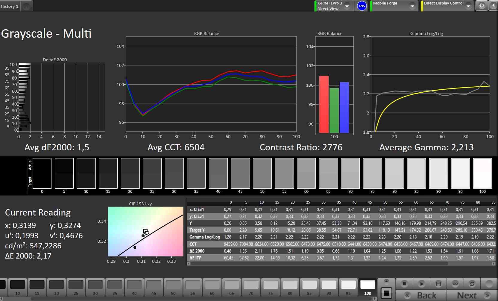 ΔE Greyscale Calman: 2.4 | ∀{0.09-98 Ø5}
