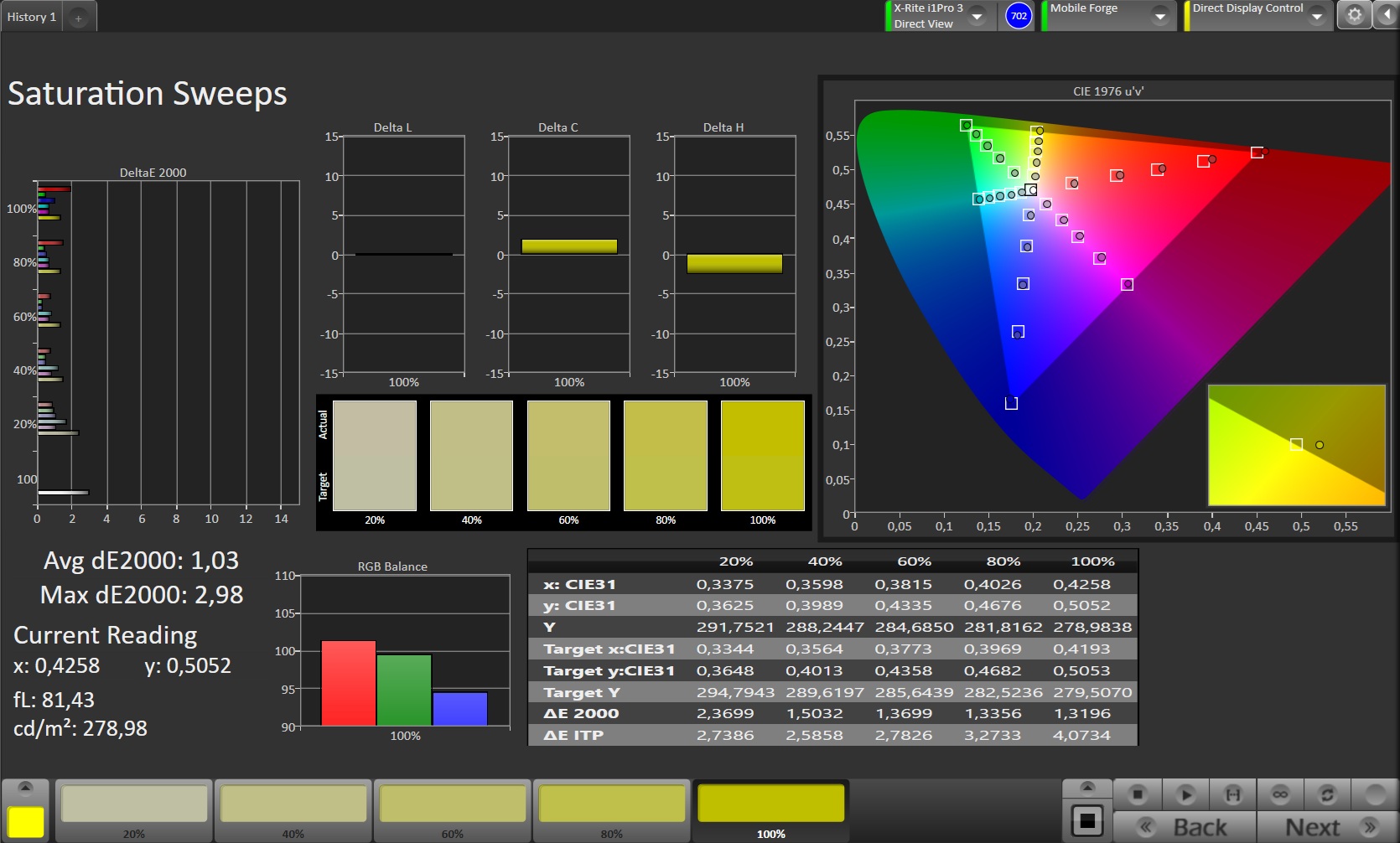 | Delta E Colorchecker * | 1.36 | 0.9 34% | 1.7 -25% | 3.42 -151% | 1 26% | 1.5 -10% |