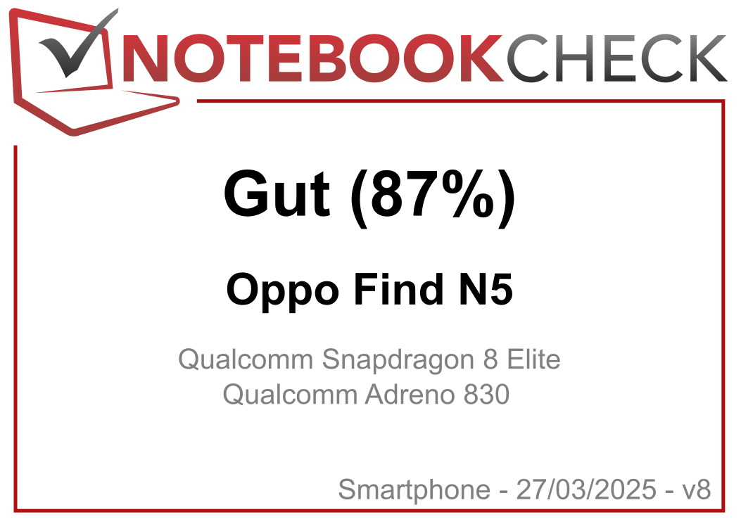 | Oppo Find N5 Qualcomm Snapdragon 8 Elite ⎘ Qualcomm Adreno 830 ⎘ 12 GB RAM, 512 GB | Amazon: 1. 1.430,00 € OPPO Find N5 5G Smartphone, ... 2. 1.619,95 € OPPO Find N5 5G Dual SIM 512... 3. 9,98 € Hhfcryst Hydrogel Folie für... Bestpreis 1332€ Gomibo.de 2. 1386€ Gomibo.at 3. 1436€ galaxus.at | 229 g | 512 GB UFS 4.0 Flash | 8.12" 2480x2248 412 PPI AMOLED | |
