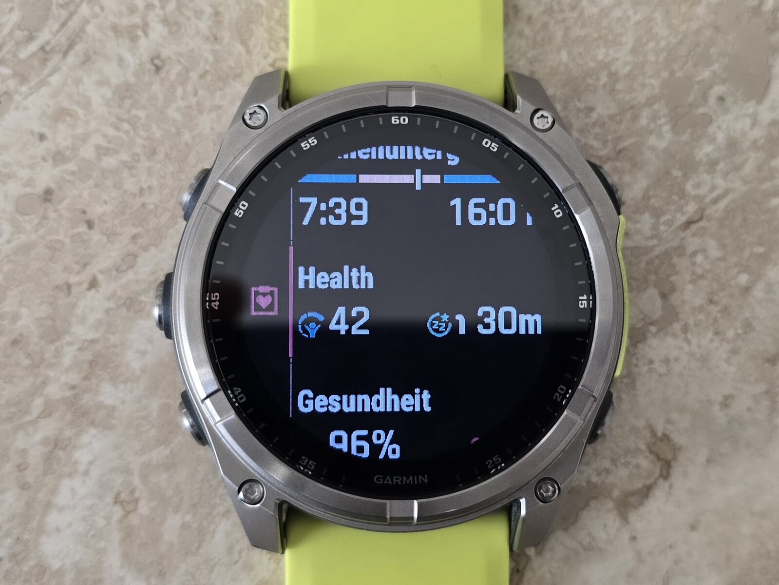 Die gesammelten Gesundheits- und Fintessdaten werden in der hauseigenen Anwendung gesammelt und abgebildet. Mit der Garmin Connect-App können Informationen, welche die Fenix 8 aufzeichnet, aber auch mit Apple Health geteilt werden. Wer ein Android-Gerät nutzt, hat es da schwieriger, denn eine direkte Möglichkeit des Datentransfers zu Google Fit gibt es nicht.