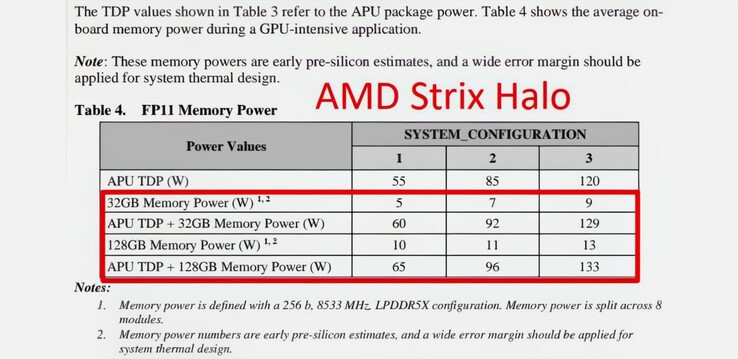 Strix Halo richtet sich damit gezielt an dünne und leichte Gaming-Notebooks, die so komplett auf einen dedizierten Grafikchip verzichten können. Laut der jüngsten Informationen kann Strix Halo mit einer TDP von wahlweise 55 Watt, 85 Watt oder 120 Watt betrieben werden, wobei Laptop-Hersteller für 32 GB LPDDR5x-8.533-Arbeitsspeicher weitere 9 Watt einplanen sollen, für 128 GB RAM dagegen 13 Watt.